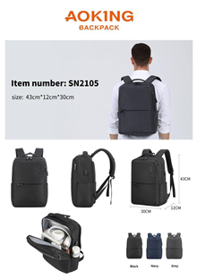 کوله پشتی با محافظ لپ تاپ Aoking مدل 2105